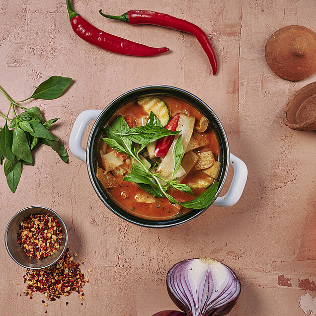 The roots of Red Curry run deep in Thai history, with its origins tracing back to the central plains of Thailand. Over centuries, it evolved, embracing influences from neighbouring regions, yet maintaining its bold character.